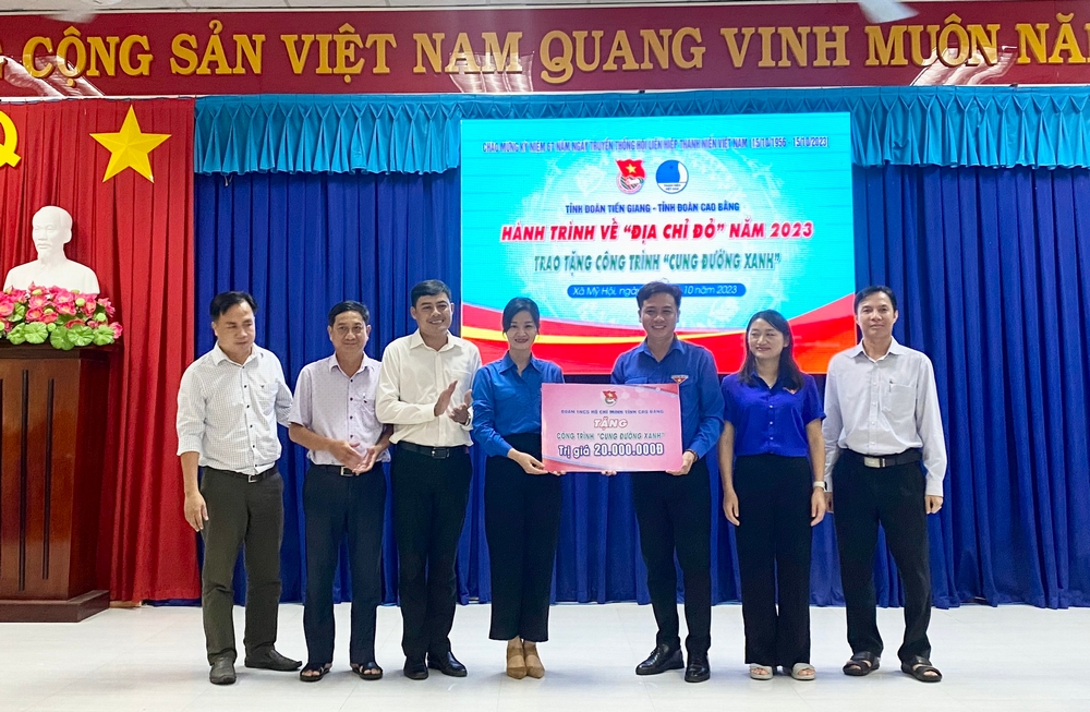 Trong hành trình, nhằm góp phần tăng cường công tác phối hợp tổ chức hoạt động tình nguyện bảo vệ môi trường, ứng phó với biến đổi khí hậu, Ban Thường vụ Tỉnh Đoàn Cao Bằng đã tặng công trình thanh niên “Cung đường xanh” trị giá 20 triệu đồng, để trồng cây xanh tại xã Mỹ Hội, huyện Cái Bè.