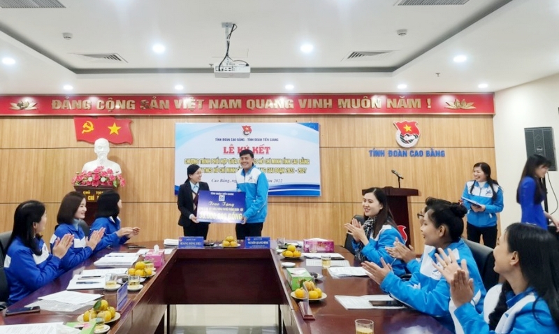 Tại chương trình, Tỉnh đoàn Tiền Giang và Tỉnh đoàn Cao Bằng đã cùng nhau trao đổi, thảo luận, thống nhất và tiến hành ký kết kế hoạch phối hợp giữa hai đơn vị giai đoạn 2022 - 2027 gồm 5 nội dung cụ thể: Tăng cường bồi dưỡng lý luận cách mạng, đẩy mạnh công tác giáo dục truyền thống cho thế hệ trẻ; Tăng cường các hoạt động giao lưu giữa 02 đơn vị; phối hợp tổ chức ít nhất hai hành trình “Hướng về về biên cương Tổ quốc” hoặc hành trình “Hướng về biển đảo quê hương”; nghiên cứu chủ trương cho cấp huyện hoặc cấp cơ sở tổ chức các hoạt động lớn nhằm huy động các nguồn lực xã hội trong tổ chức các hoạt động và tăng cường công tác phối hợp tổ chức hoạt động tình nguyện bảo vệ môi trường, quảng bá sản phẩm đặc sản, sản phẩm OCOP các địa phương.