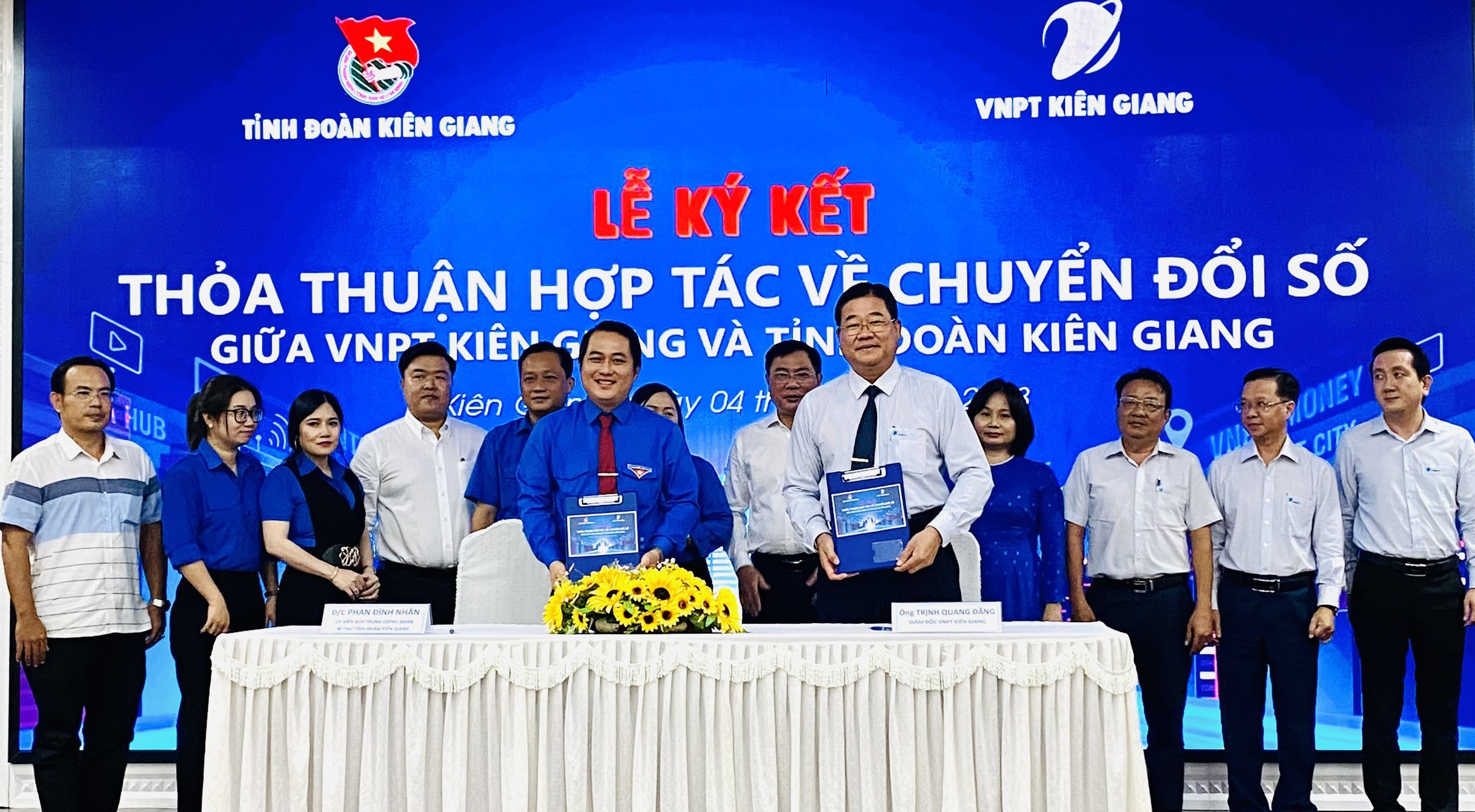 Theo chương trình ký kết hợp tác giữa hai ngành, Tỉnh Đoàn Kiên Giang sẽ ưu tiên sử dụng các sản phẩm, dịch vụ viễn thông - công nghệ thông tin, truyền thông của VNPT Kiên Giang để thúc đẩy triển khai chuyển đổi số trong cộng đồng trường học, cơ quan, doanh nghiệp tại Tỉnh Kiên Giang; Hỗ trợ Truyền thông các sản phẩm, dịch vụ của VNPT trên hệ thống báo chí, phát thanh, truyền hình, mạng xã hội mà Tỉnh đoàn quản lý theo thỏa thuận giữa hai bên; Phối hợp quảng bá, giới thiệu các sản phẩm, dịch vụ của VNPT tới các cơ quan thuộc Tỉnh đoàn, các đơn vị trực thuộc và toàn bộ đoàn viên thanh niên trên địa bàn Tỉnh Kiên Giang; Cùng VNPT Kiên Giang nghiên cứu, đề xuất các giải pháp tối ưu các sản phẩm, công cụ chuyển đổi số, phát triển các tính năng hữu ích, cần thiết căn cứ trên nhu cầu, thực tiễn triển khai tại địa phương.