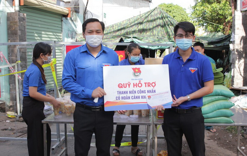 Thành lập các đội hình hỗ trợ khu vực phong tỏa, cách ly trên địa bàn tỉnh gồm 10 đội hình với hơn 100 đoàn viên thanh niên tham gia. Hỗ trợ công tác phát vật dụng sinh hoạt, lương thực, thực phẩm, hỗ trợ phát loa thông tin, dọn dẹp vệ sinh khu vực cách ly, phong tỏa, hỗ trợ nhân viên y tê trong công tác lấy mẫu xét nghiệm,… Ban Thường vụ Tỉnh đoàn cũng đã tổ chức thăm hỏi, động viên và trao tặng 40.000 khẩu trang y tế, 200 thùng nước uống, và hơn 400 lít dung dịch rửa tay sát khuẩn phục vụ công tác phòng, chống dịch bệnh Covid-19 tại các khu vực cách ly, phong tỏa trên địa bàn thành phố Dĩ An, Thủ Dầu Một; trao tặng 01 tấn gạo cho người dân gặp khó khăn do ảnh hưởng của dịch bệnh Covid-19.
