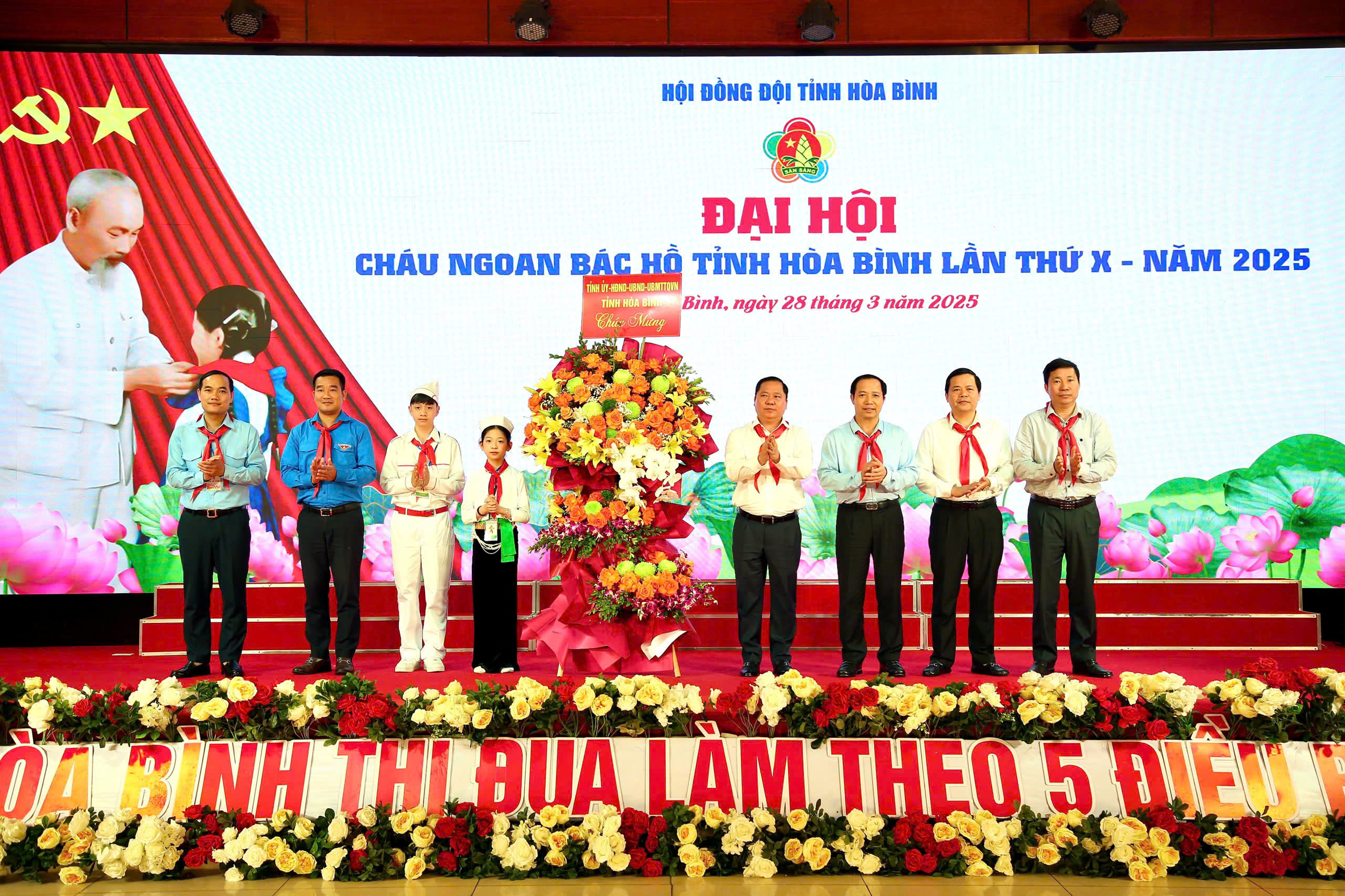 Đồng chí Lê Hải Long, Phó Chủ tịch thường trực Hội đồng Đội Trung ương; đồng chí Nguyễn Duy Tư, Ủy viên Ban Chấp hành Trung ương Đoàn, Bí thư Tỉnh đoàn, Chủ tịch Hội LHTN Việt Nam tỉnh Hoà Bình; đồng chí Nguyễn Thành Luân, Phó Bí thư Tỉnh đoàn, Chủ tịch Hội đồng Đội tỉnh; cùng 270 đại biểu Cháu ngoan Bác Hồ đại diện cho gần 150.000 đội viên, thiếu niên, nhi đồng toàn tỉnh.