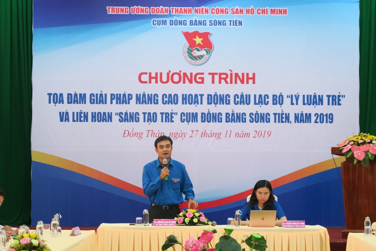 Web.ĐTN: Ngày 27/11, Tỉnh đoàn Đồng Tháp đăng cai tổ chức chương trình tọa đàm giải pháp nâng cao lý luận trẻ cụm đồng bằng Sông Tiền năm 2019 với nội dung “Đoàn tham gia bảo vệ nền tảng tư tưởng, lý luận của Đảng” và liên hoan “Sáng tạo trẻ” cụm đồng bằng sông Tiền, năm 2019.
