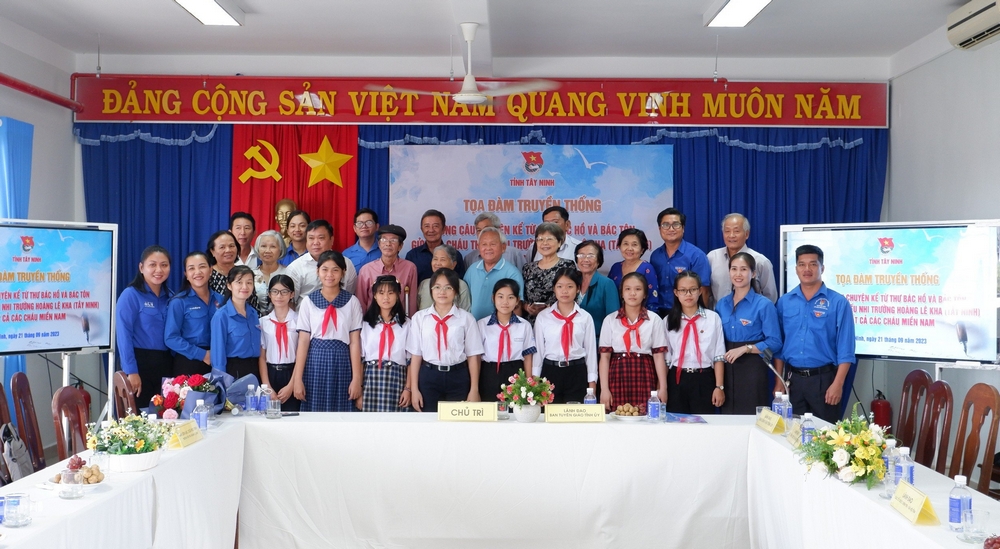 Tại buổi tọa đàm, các bạn đoàn viên, thanh niên và các em đội viên đã được các cô, chú trong Ban liên lạc và cựu học sinh trường nội trú Hoàng Lê Kha học sinh miền Nam tỉnh Tây Ninh, những nhân chứng lịch sử đã từng được tiếp cận và đọc thư của Bác Hồ và Bác Tôn ngày ấy chia sẻ về xuất sứ, ý nghĩa và giá trị của Thư Bác Hồ và Bác Tôn gửi các cháu thiếu nhi Hoàng Lê Kha và tất cả các cháu miền Nam.
