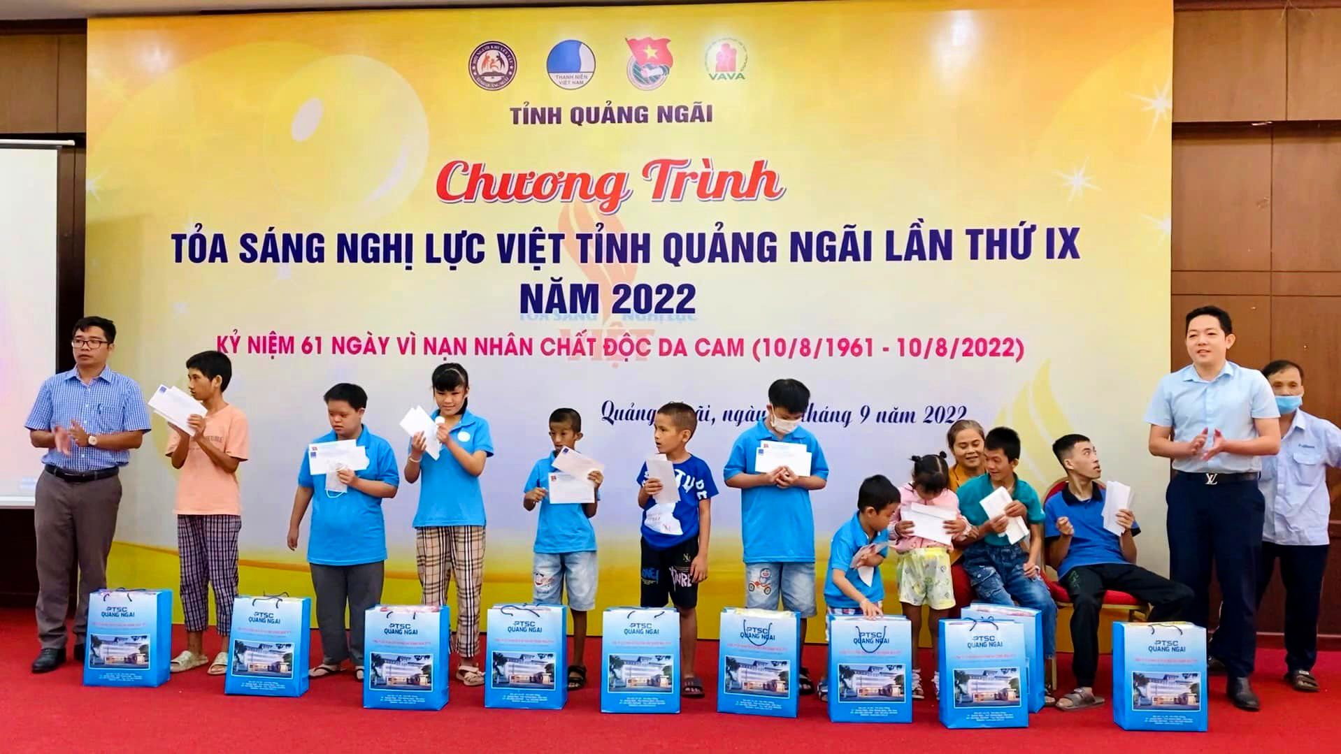 Bên cạnh, Đoàn Thanh niên Công ty Cổ phần dịch vụ dầu khí Quảng Ngãi cũng dành tặng 10 phần quà, tổng trị giá 5 triệu đồng đến các em thanh thiếu nhi là nạn nhân chất độc da cam như một lời động viên, tiếp sức, lan tỏa yêu thương từ cộng đồng và xã hội.