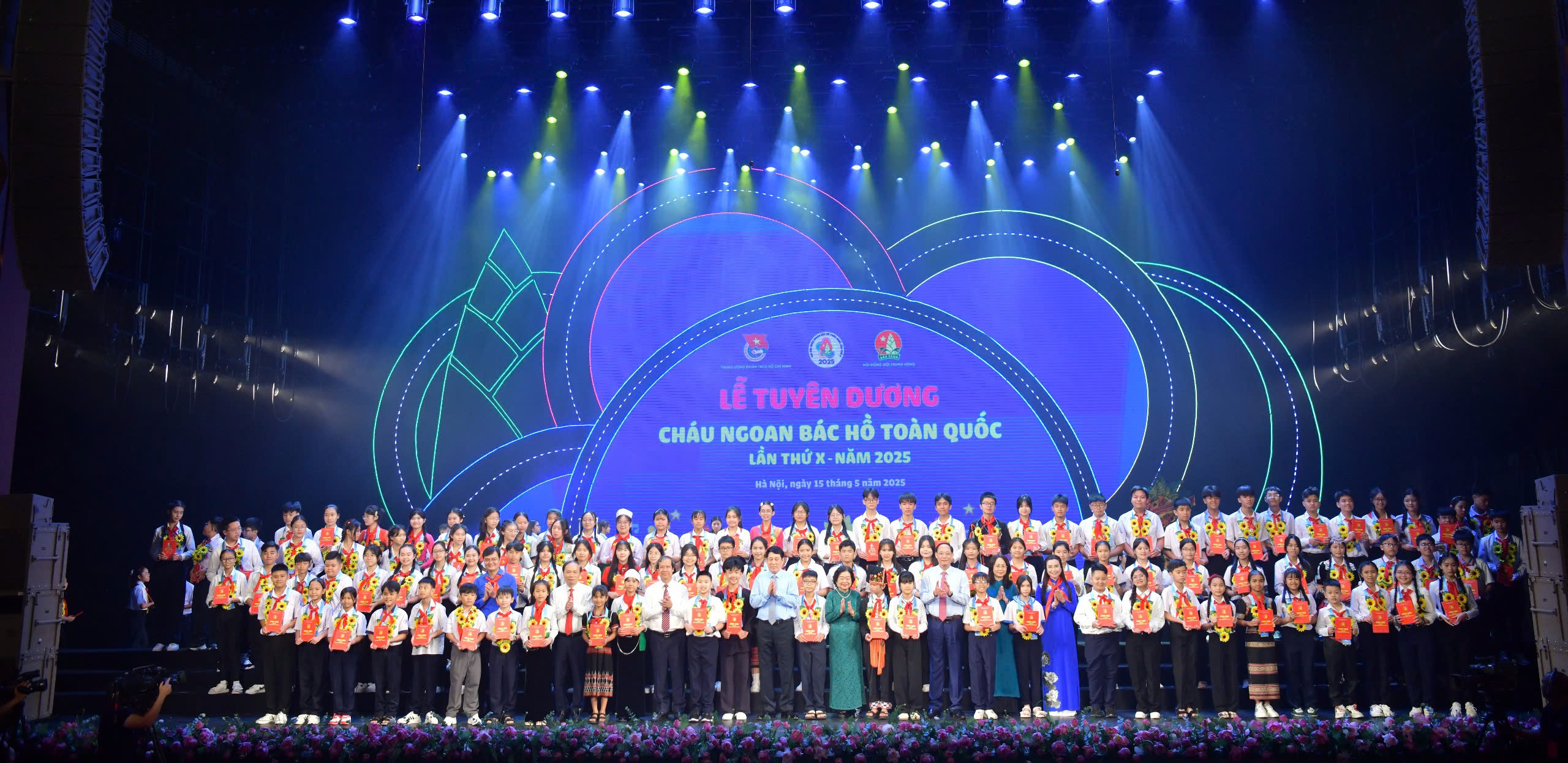 Thay mặt lãnh đạo Đảng, Nhà nước, Bác nhiệt liệt biểu dương và khen ngợi những thành tích xuất sắc của 500 tấm gương điển hình Cháu ngoan Bác Hồ tiêu biểu toàn quốc được tuyên dương hôm nay, cùng toàn thể đội viên, thiếu niên, nhi đồng cả nước đã đạt được trong thời gian qua.