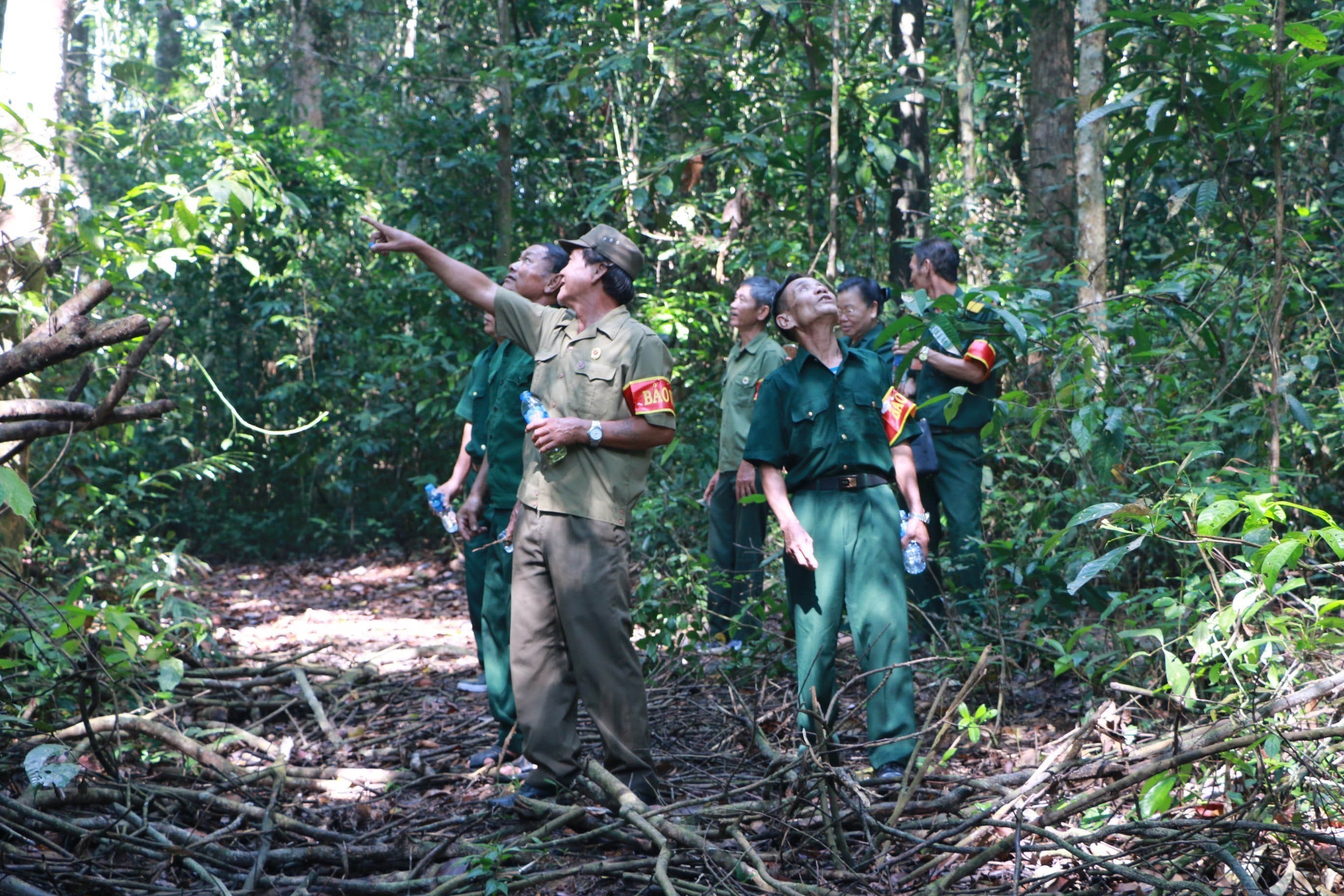 Các cựu chiến binh tham gia giám sát, quản lý, bảo vệ có hiệu quả khu rừng nguyên sinh Mã Đà, xã Tân Hòa, huyện Đồng Phú, tỉnh Bình Phước_Ảnh: TTXVN