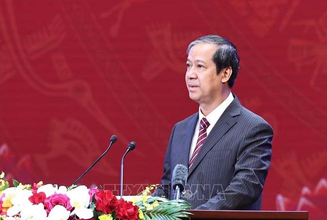 Bộ trưởng Bộ Giáo dục và Đào tạo Nguyễn Kim Sơn phát biểu. Ảnh: Thống Nhất/TTXVN