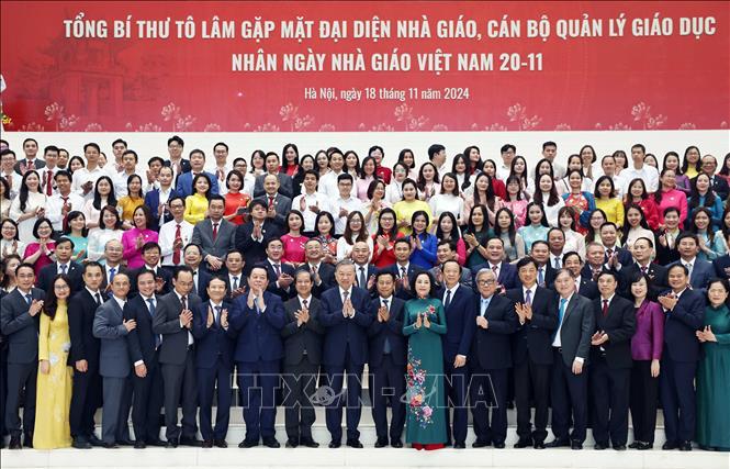 Phát biểu tại bổi gặp mặt, Tổng Bí thư Tô Lâm nhiệt liệt chúc mừng, biểu dương những thành tựu đã đạt được trong đổi mới giáo dục, đào tạo thời gian qua của toàn ngành giáo dục, đội ngũ các nhà giáo, cán bộ quản lý giáo dục. Đồng thời gửi lời cảm ơn chân thành, sâu sắc và những lời chúc mừng tốt đẹp nhất tới các thế hệ thầy cô giáo trên cả nước nhân Ngày Nhà giáo Việt Nam 20/11.