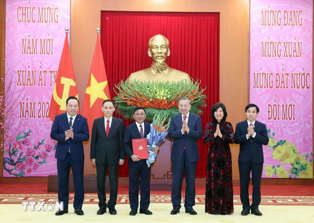 Tổng Bí thư Tô Lâm trao quyết định của Bộ Chính trị thành lập Đảng bộ các cơ quan Đảng Trung ương, ngày 3/2. Ảnh: TTXVN.