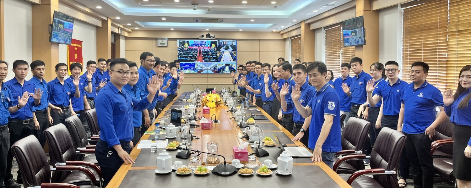 Các đồng chí lãnh đạo cùng ĐVTN tham dự đối thoại tại Trụ sở Tập đoàn