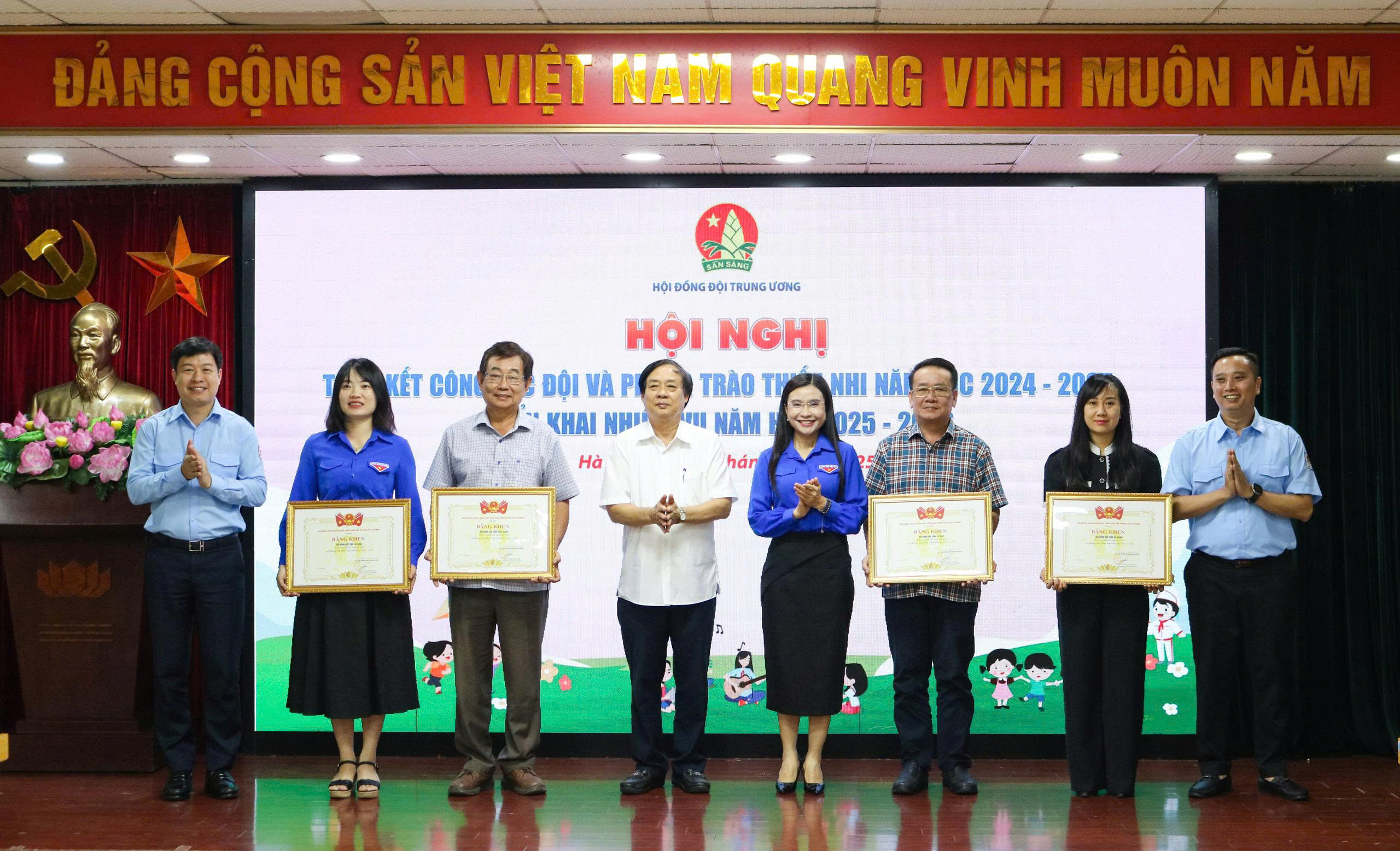 Tại Hội nghị, để ghi nhận sự nỗ lực cố gắng và biểu dương những thành tích đạt được của Hội đồng Đội các tỉnh, thành phố Ban Bí thư Trung ương Đoàn, Hội đồng Đội Trung ương đã quyết định tặng Cờ thi đua cho 29 đơn vị, bằng khen của Hội đồng Đội Trung ương cho 34 đơn vị và 65 cá nhân có thành tích xuất sắc trong công tác Đội và phong trào thiếu nhi năm học 2024 - 2025.