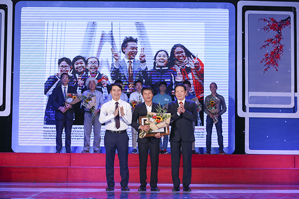 Thứ trưởng Bộ Thông tin và Truyền thông Hoàng Vĩnh Bảo và Bí thư Trung ương Đoàn Nguyễn Ngọc Lương trao giải Nhất cho tác phẩm “Niềm vui trên cây cầu hữu nghị Việt Nam – Nhật Bản” của tác giả Nguyễn Việt Cường (Hà Nội)