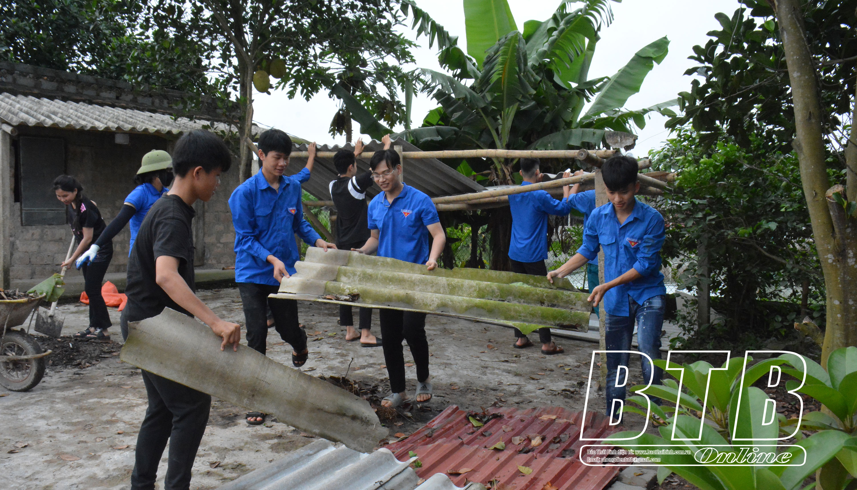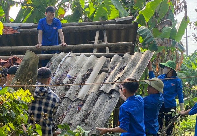 Đoàn viên, thanh niên xã Song Lãng (Vũ Thư) hỗ trợ tháo dỡ lán trại, giải phóng mặt bằng phục vụ thi công dự án đường dây 500kV mạch 3.