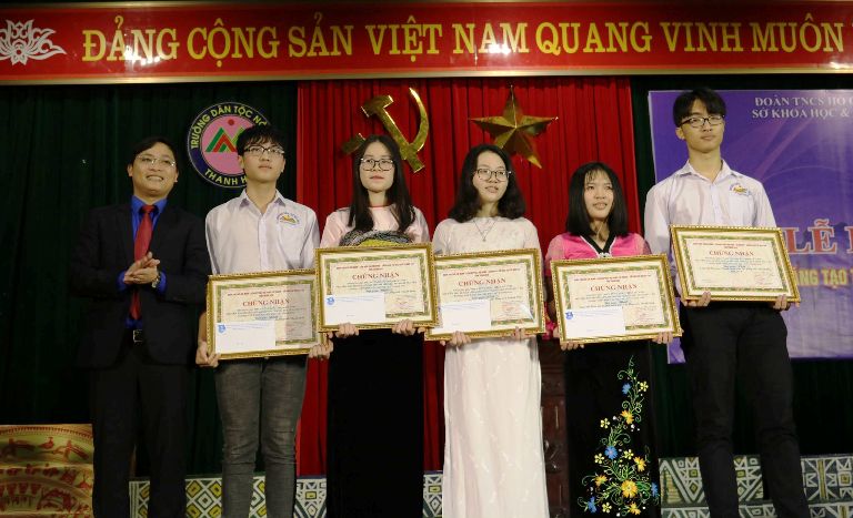 Cấp Trung ương, tỉnh Thanh Hóa đạt 01 giải Ba: Mô hình “Thiết bị thí nghiệm nghiên cứu dòng điện trong chất điện phân dùng trong chương trình vật lý và hóa học phổ thông” của nhóm tác giả Phạm Tùng Lộc, Phạm Lê Anh, Nguyễn Thu Hường, Phạm Khánh Trang, Bùi Đình Nguyên, Học sinh Trường THPT Dân tộc Nội trú tỉnh.