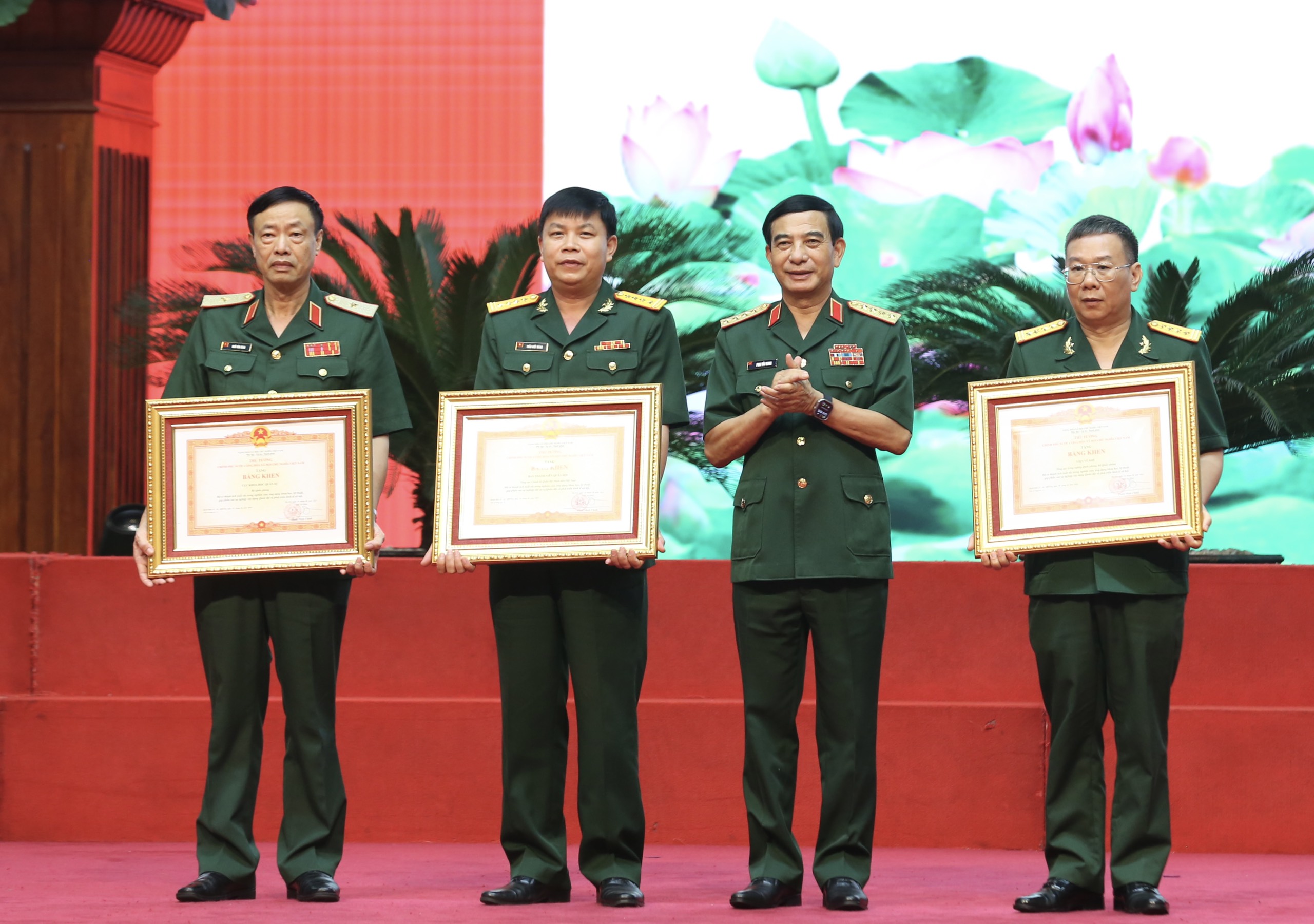 Đại tướng Phan Văn Giang, Bộ Trưởng Bộ Quốc Phòng trao Bằng Khen Thủ tướng cho Bằng khen của Thủ tướng Chính phủ tặng 4 tập thể tại buổi lễ