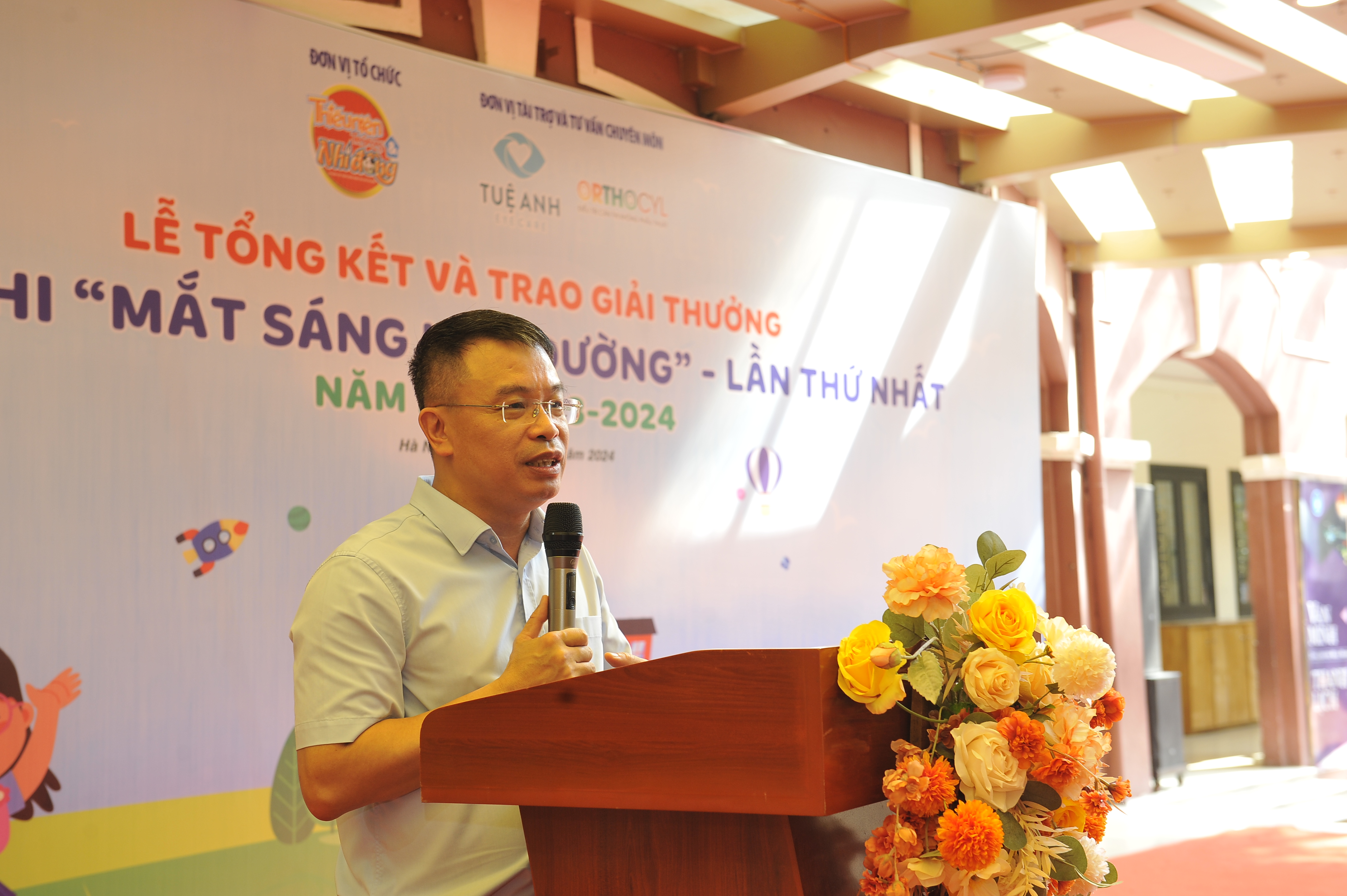 Nhà văn, nhà báo Nguyễn Phan Khuê -Tổng Biên tập báo Thiếu niên Tiền phong và Nhi đồng (TNTP&NĐ) phát biểu tổng kết Cuộc thi “Mắt sáng học đường" lần thứ nhất, năm học 2023 – 2024.