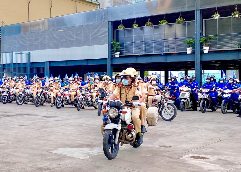 Các đội hình ra quân thực hiện nhiệm vụ đảm bảo an toàn, trật tự giao thông ngay sau lễ phát động