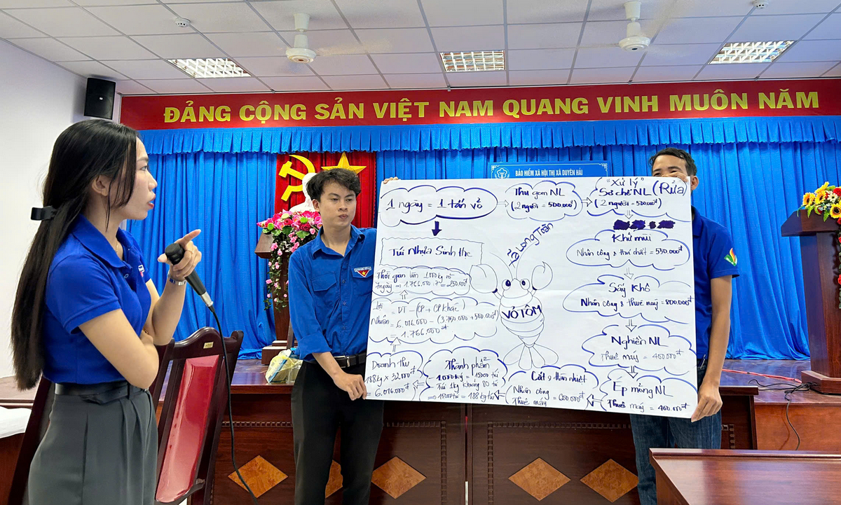 Đoàn viên, thanh niên Thị đoàn Duyên Hải trình bày cách khởi nghiệp từ vỏ tôm