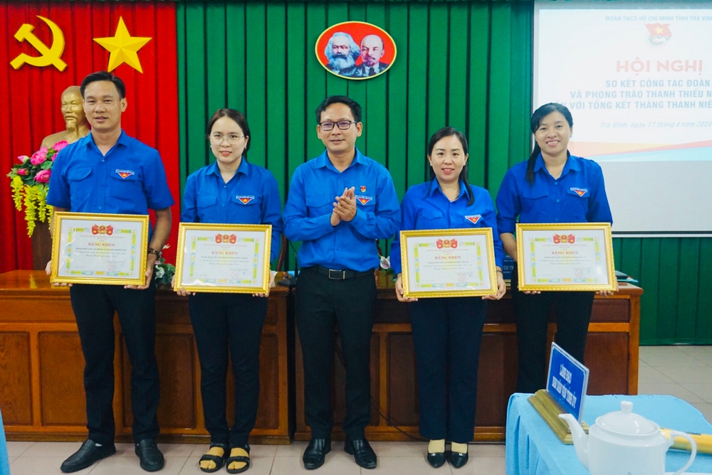 Tại hội nghị đồng chí Trần Trí Cường thay mặt Ban Chấp hành Tỉnh đoàn trao bằng khen cho 05 tập thể có thành tích xuất sắc trong triển khai thực hiện Tháng Thanh niên năm 2024 gồm Huyện đoàn Cầu Kè, Châu Thành, Trà Cú, Đoàn Khối các Cơ quan và doanh nghiệp tỉnh và Ban Phong trào Tỉnh đoàn.
