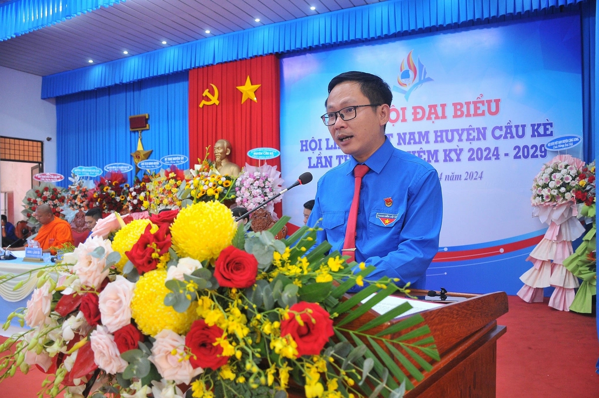 Đồng chí Trần Trí Cường - Bí thư Tỉnh đoàn, Trưởng Ban tổ chức Đại hội Hội LHTN Việt Nam các cấp phát biểu chỉ đạo Đại hội đại biểu Hội LHTN Việt Nam huyện Cầu Kè, nhiệm kỳ 2024 - 2029(điểm cấp huyện của UBH tỉnh)