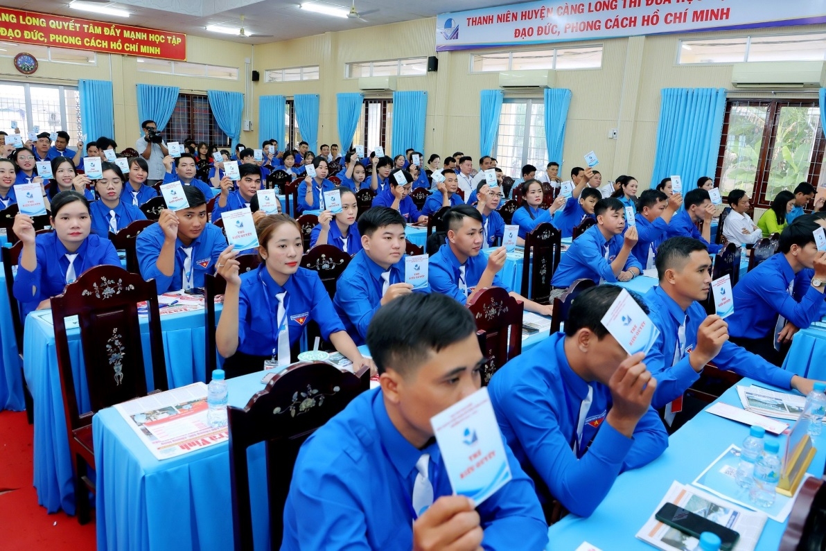 Đại biểu đại hội Hội LHTN Việt Nam huyện Càng Long biểu quyết các chỉ tiêu nhiệm kỳ mới