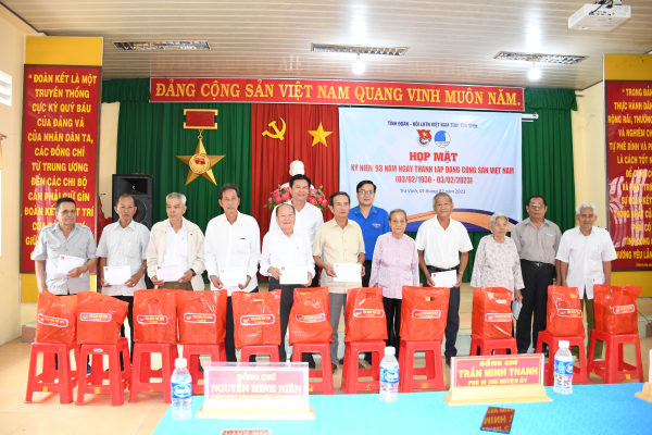 Dịp này, Tỉnh đoàn Trà Vinh tặng 15 phần quà (mỗi phần trị giá 800.000đ) nhằm thể hiện sự tri ân của tuổi trẻ đối với các đồng chí cao niên tuổi Đảng, lão thành cách mạng.
