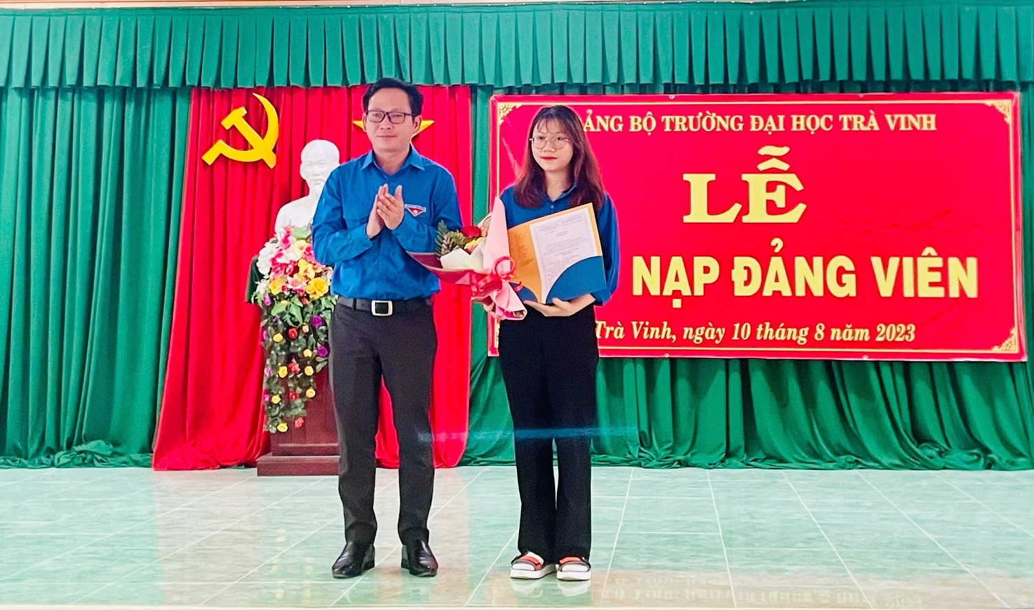 Trần Trí Cường, Ủy viên Ban Chấp hành Trung ương Đoàn, Bí thư Tỉnh đoàn Trà Vinh trao quyết định kết nạp Đảng cho Đoàn viên ưu tú là sinh viên