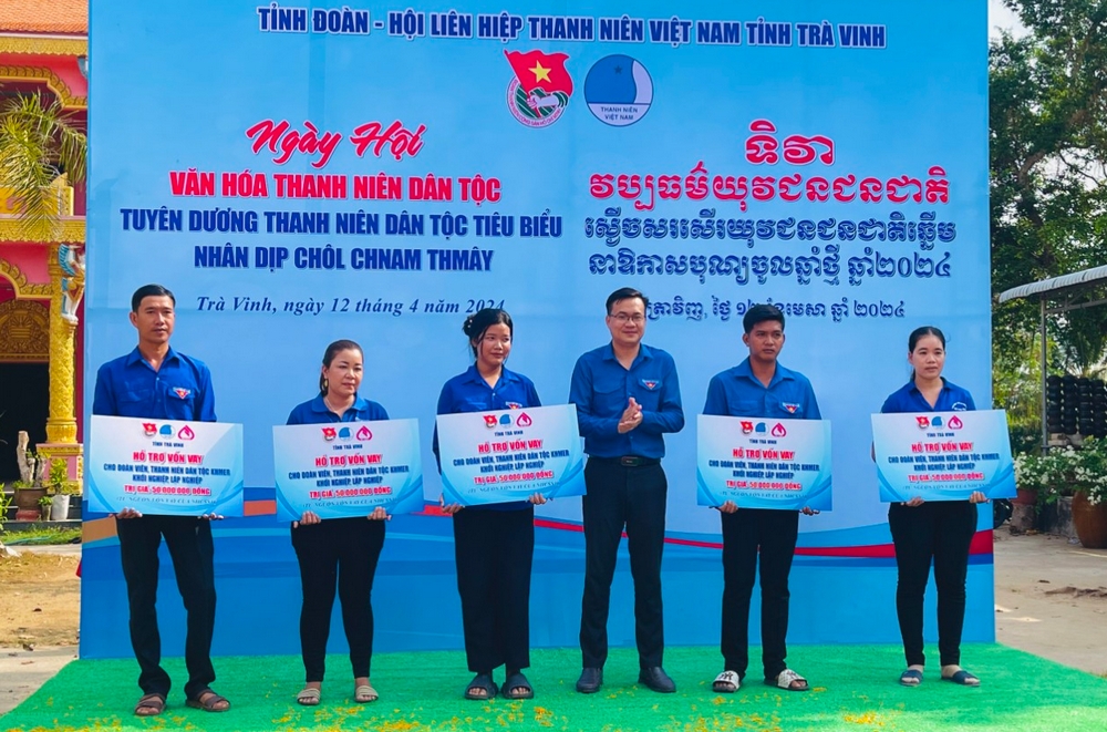 Bên cạnh đó, Ban Thường vụ Tỉnh đoàn, Ủy ban Hội tỉnh đã phối hợp Ngân hàng Chính sách xã hội chi nhánh tỉnh Trà Vinh trao hỗ trợ vốn vay lập thân, lập nghiệp cho 5 đoàn viên, thanh niên người dân tộc Khmer trên địa bàn huyện, số tiền vay đối với mỗi cá nhân là 50 triệu đồng.