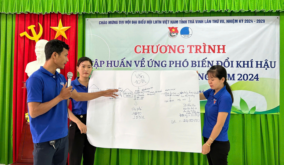 Lồng ghép trong buổi tập huấn là các hoạt động làm việc nhóm, trình bày và thảo luận cho đoàn viên, thanh niên. Qua đó, giúp đoàn viên, thanh niên có thêm nhiều ý tưởng hay, cách làm hiệu quả, năng động, sáng tạo, nhiều mô hình ý tưởng khởi nghiệp, lập nghiệp mang lại giá trị cao cho thanh niên trong lĩnh vực ứng phó biến đổi khí hậu và bảo vệ môi trường.