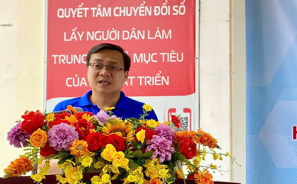 Đồng chí Nguyễn Thanh Nhã, Phó Bí thư thường trực Tỉnh đoàn, Chủ tịch Hội LHTN Việt Nam tỉnh phát biểu tại chương trình