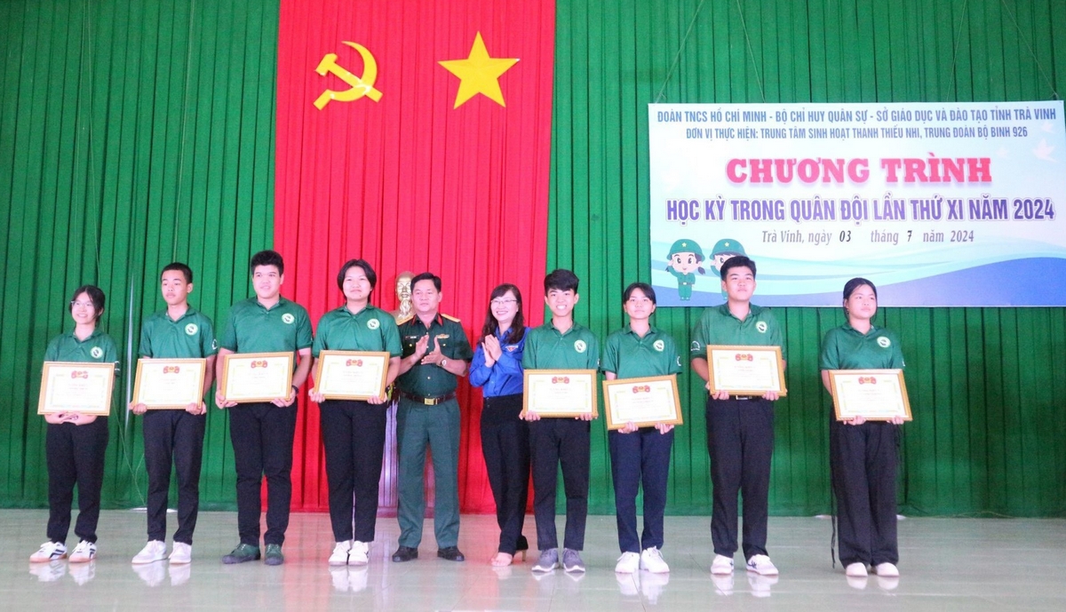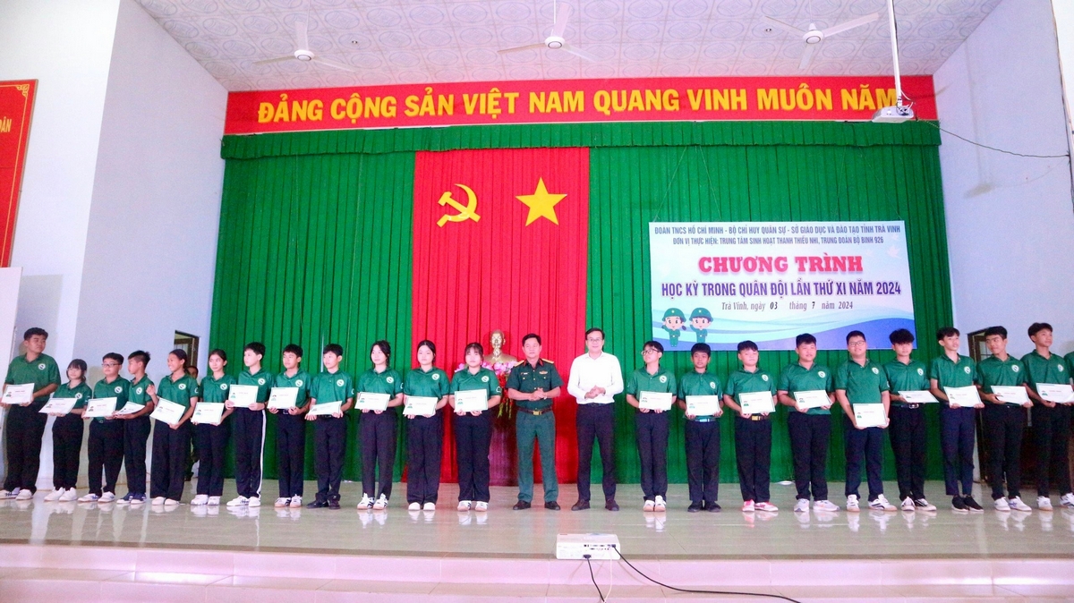 Nhằm ghi nhận sự nỗ lực trong học tập của các học viên, Bộ chỉ huy quân sự tỉnh trao giấy chứng nhận cho 200/202 học viên đã hoàn thành chương trình; khen 09 Điều phối viên, cán bộ quản lý. Tỉnh đoàn trao bằng khen cho 17 học viên, 14 cán bộ Trung đoàn “đã có thành tích xuất sắc trong tham gia chương trình học kỳ trong quân đội năm 2024”.