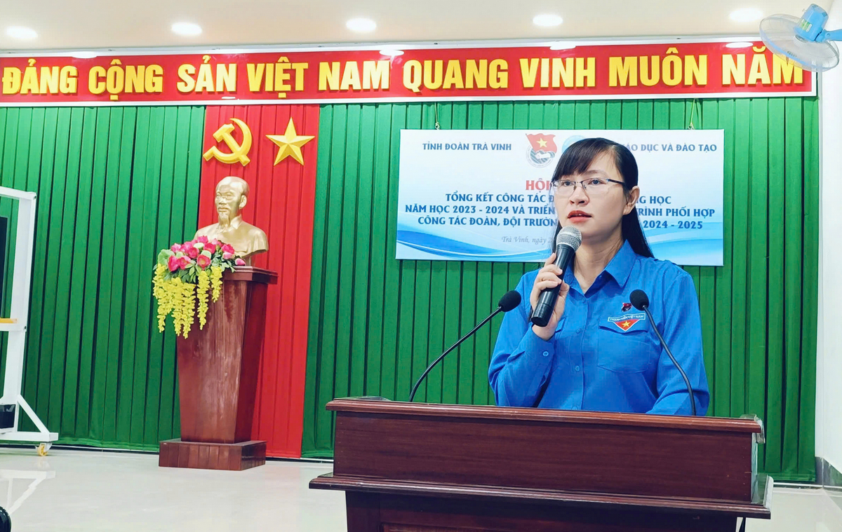 Phát biểu tại Hội nghị, đồng chí Nguyễn Thị Cẩm Hương, Phó Bí thư Tỉnh đoàn, Chủ tịch Hội đồng Đội tỉnh, Giám đốc Trung tâm Sinh hoạt Thanh thiếu nhi tỉnh đề nghị Đoàn, Đội trường học các cấp cần tiếp tục quan tâm công tác tuyên truyền, góp phần giáo dục đạo đức, lối sống, chính trị, tư tưởng đến đông đảo học sinh, Đoàn viên, Đội viên; thực hiện các giải pháp nhằm chuyển đổi số trong công tác Đoàn, Đội trường học, phát huy vai trò của thanh niên trong tham gia tích cực công cuộc chuyển đổi số; tiếp tục phát triển nhân rộng và nâng chất những mô hình hay, cách làm hiệu quả; tổ chức thành công đại hội Đoàn trường, đại hội Liên, Chi đội theo đúng thời gian quy định.