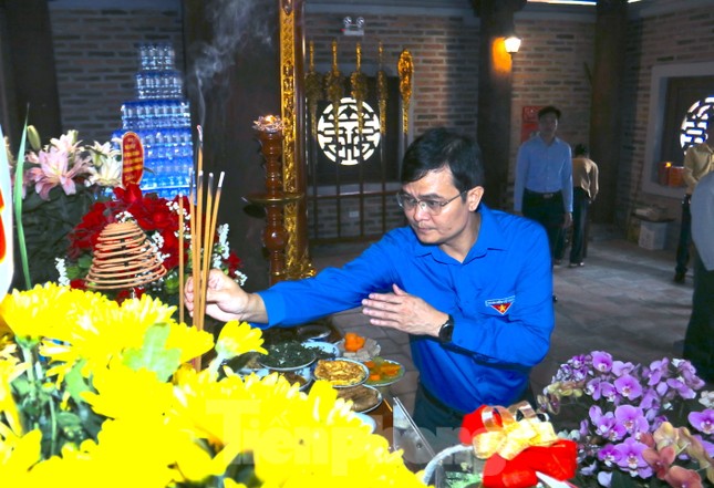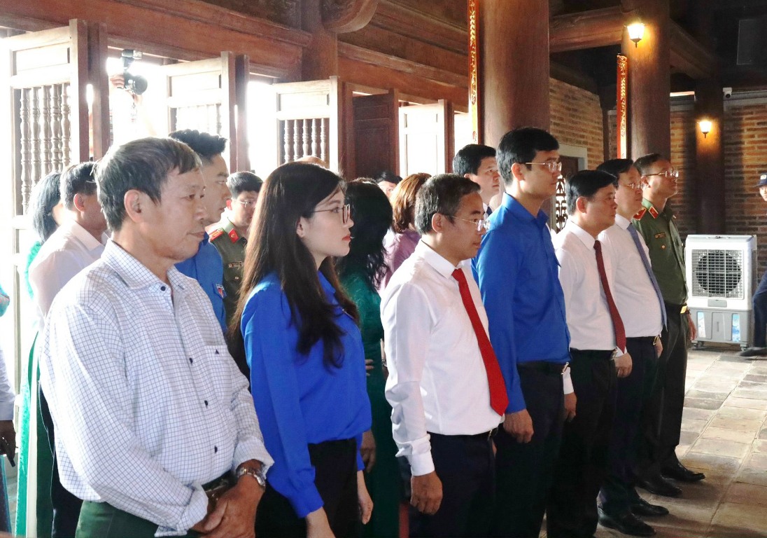 Trước đó, đoàn công tác dâng hoa, dâng hương tưởng niệm tại Đền Chung Sơn - Đền thờ Gia tiên Chủ tịch Hồ Chí Minh.
