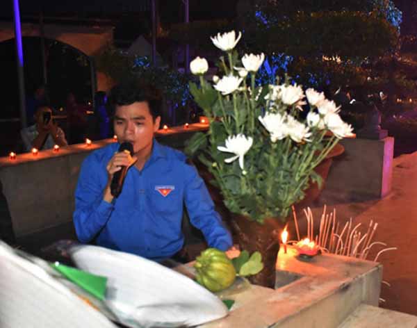 Trước anh linh của các Anh hùng Liệt sỹ, đồng chí Lê Thành Đông, Phó Bí thư phụ trách Tỉnh đoàn thay mặt tuổi trẻ tỉnh nhà bày tỏ lòng thành kính, tưởng nhớ và biết ơn sâu sắc đối với công lao to lớn của Chủ tịch Hồ Chí Minh vĩ đại và các anh hùng, liệt sỹ, Mẹ Việt Nam anh hùng, các thương binh, bệnh binh, thân nhân liệt sỹ, gia đình có công với cách mạng.