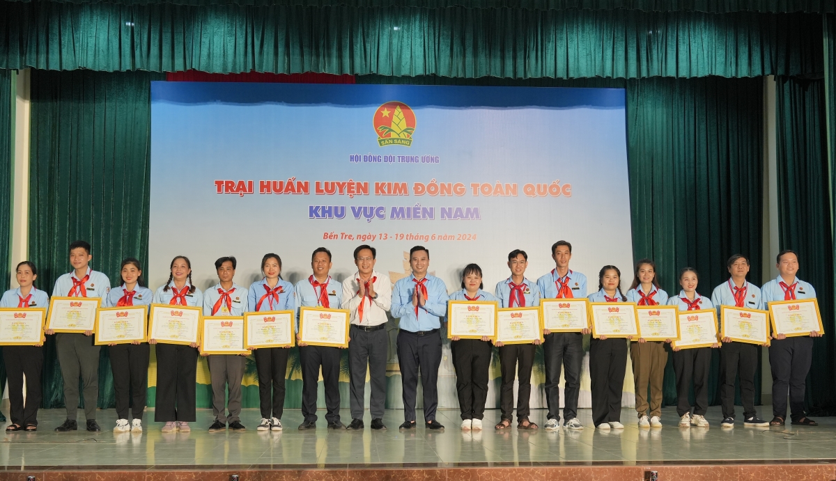 Dịp này, Ban Bí thư T.Ư Đoàn đã trao tặng Bằng khen cho 15 trại sinh có thành tích xuất sắc tiêu biểu nhất tại Trại Huấn luyện Kim Đồng toàn quốc năm 2024. Hội đồng Đội Trung ương trao tặng Bằng khen cho 15 trại sinh có thành tích xuất sắc, tích cực tham gia các hoạt động tại trại; tuyên dương 8 đơn vị tỉnh, thành phố đã chuẩn bị rất tốt các điều kiện để trại sinh tham gia và đạt kết quả cao như: An Giang, Bạc Liêu, Bến Tre, Đồng Nai, Phú Yên, Tây Ninh, Tiền Giang và Thành phố Hồ Chí Minh.