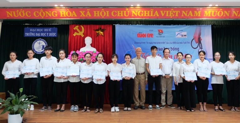Đồng chí Trần Gia Công - Bí thư Tỉnh Đoàn trao học bổng cho các bạn sinh viên trường Đại học Y dược, Đại học Huế