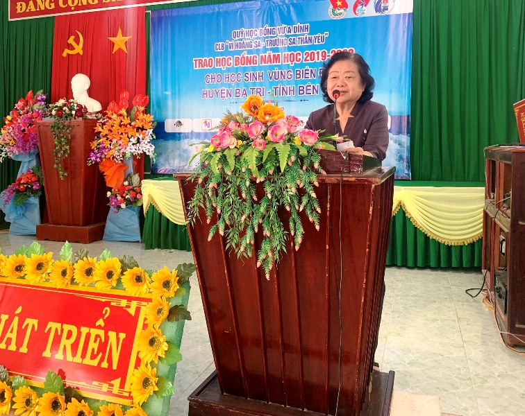 Bà Trương Mỹ Hoa - Nguyên Bí thư Trung ương Đảng, Nguyên Phó Chủ tịch nước CHXHCN Việt Nam, Chủ tịch Quỹ học bổng Vừ A Dính, Chủ nhiệm CLB “Vì Hoàng Sa - Trường Sa thân yêu” phát biểu tại Chương trình