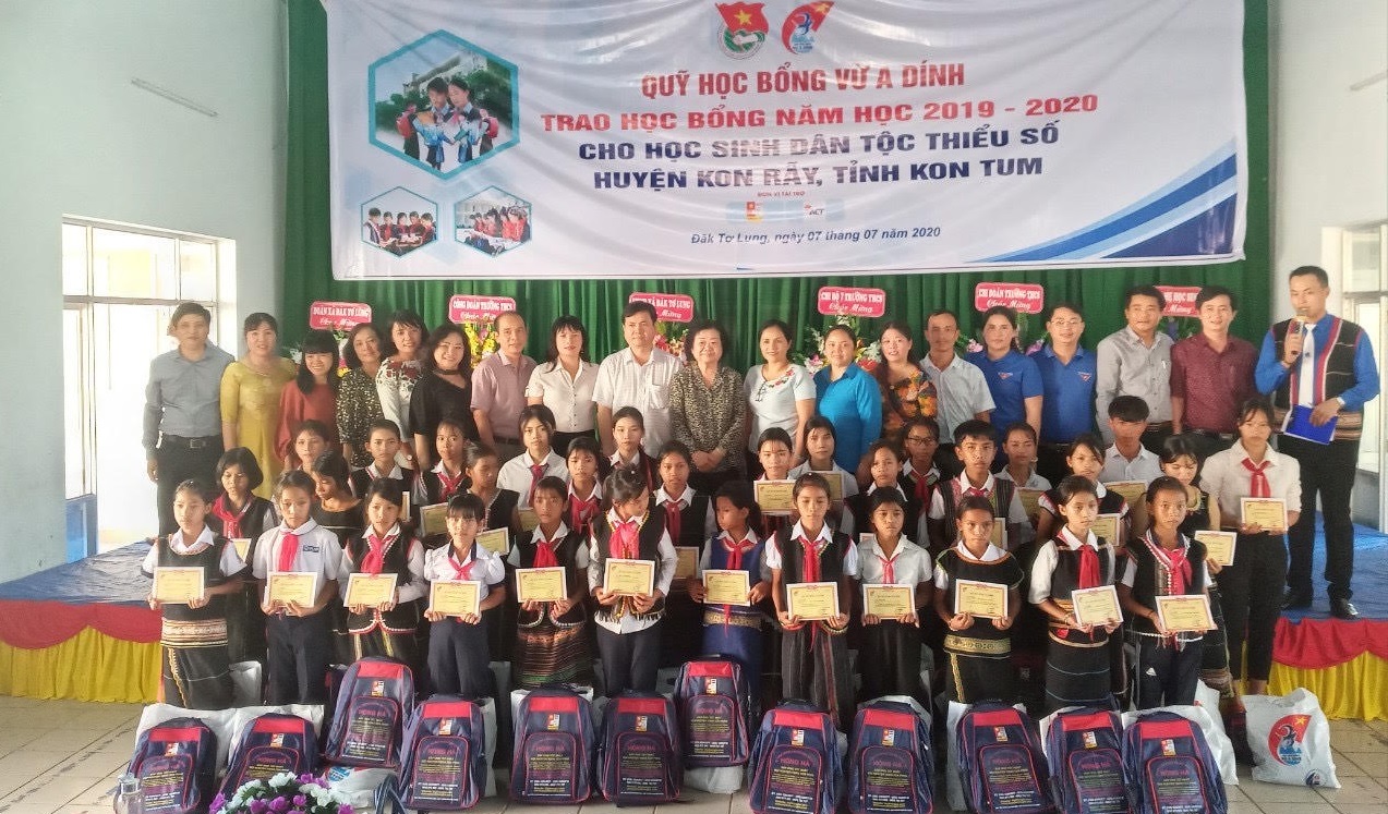 Tại buổi lễ, Ban Tổ chức đã trao học bổng 55 suất, mỗi suất trị giá 1 triệu đồng; 55 suất quà do Quỹ Vừ A Dính và Trường THCS- THPT Hồng Hà tặng tổng trị giá 420.000đ cho học sinh dân tộc thiểu số vùng cao khối tiểu học, THCS và THPT huyện Kon Rẫy và Kon Plong, tỉnh Kon Tum.