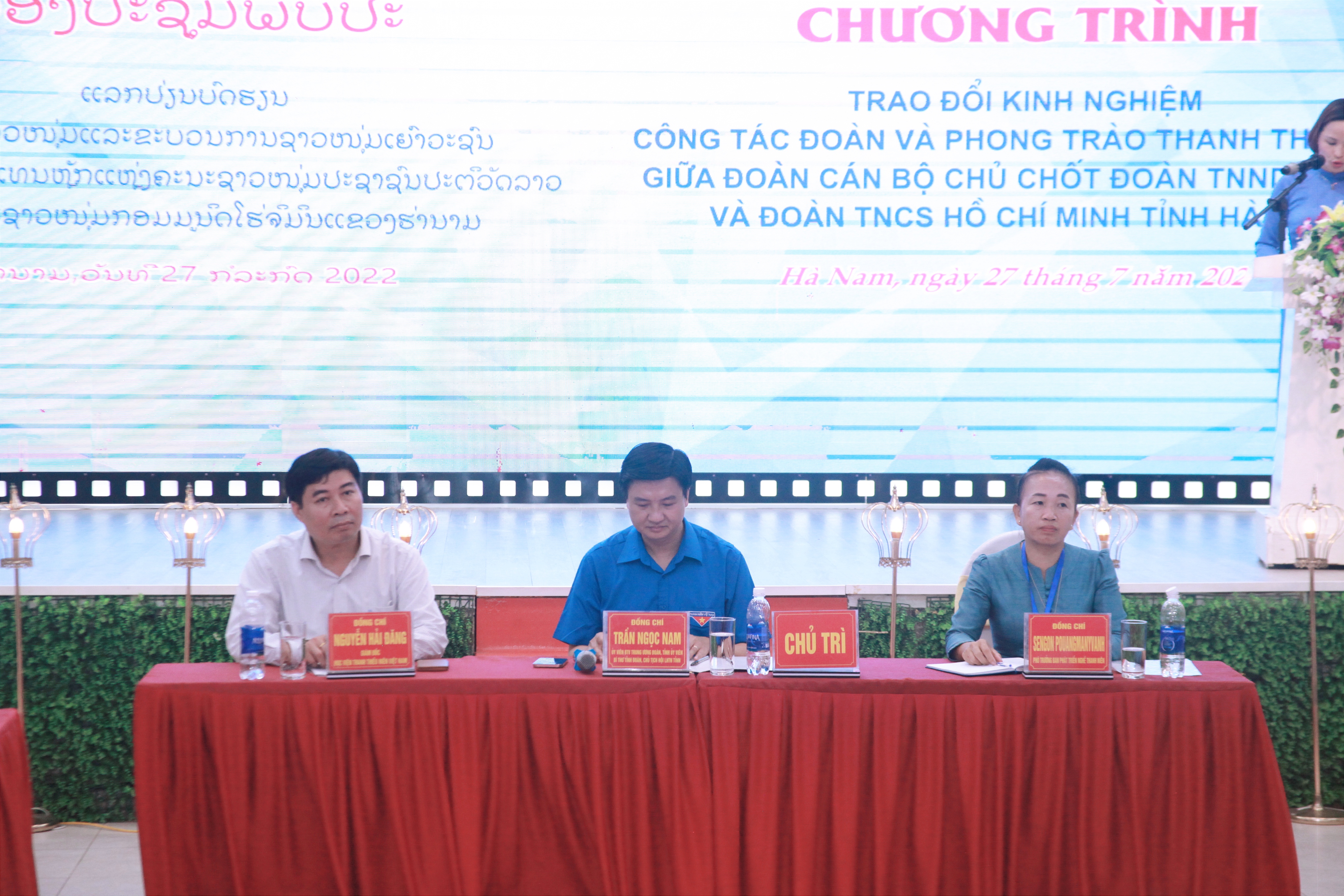 Phát biểu tại buổi tiếp đoàn, đồng chí Trần Ngọc Nam - Ủy viên BTV Trung ương Đoàn, TUV, Bí thư Tỉnh đoàn, Chủ tịch Hội LHTN Việt Nam tỉnh Hà Nam đã nhiệt liệt chào mừng đoàn đại biểu Đoàn TNND Cách mạng Lào đã tới thăm và làm việc tại Hà Nam; đồng thời ôn lại tình đoàn kết hữu nghị keo sơn, gắn bó của Đảng và nhân dân hai nước. Đồng chí đã thông tin nhanh đến đoàn thông tin khái quát về lịch sử, văn hiến của tỉnh Hà Nam; tình hình phát triển kinh tế, văn hóa, chính trị của tỉnh hiện nay; cơ cấu tổ chức, hoạt động công tác Đoàn và phong trào thanh, thiếu nhi tỉnh Hà Nam.