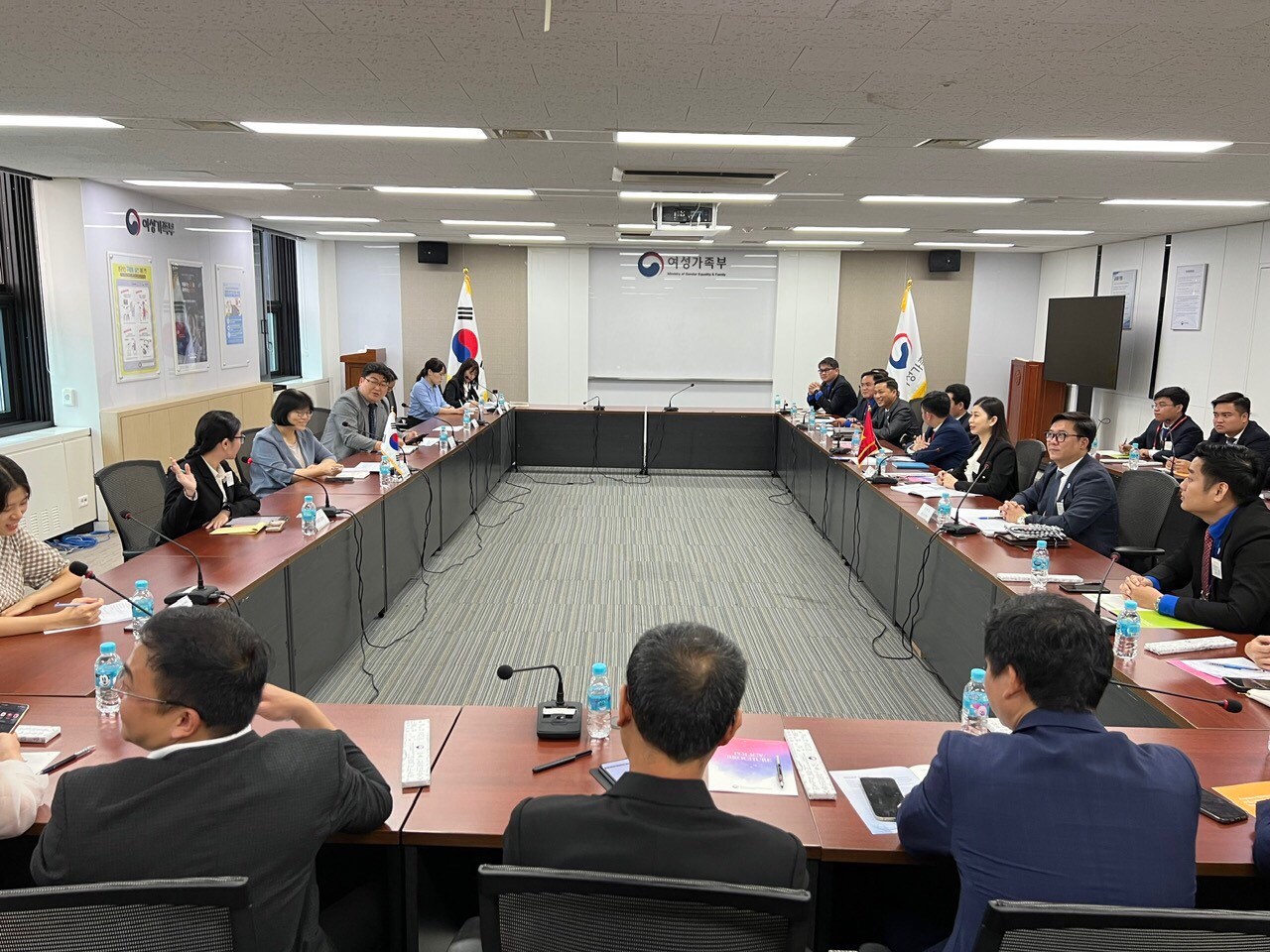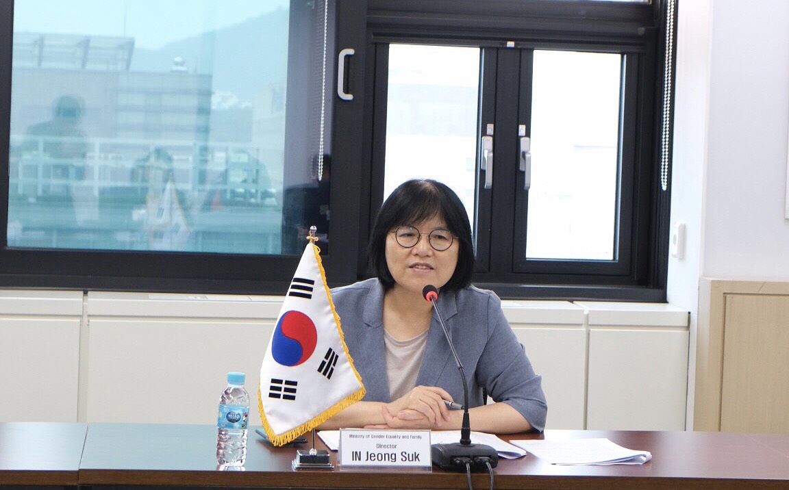 Bà In Jeong Suk thông tin về các chức năng, chính sách hiện của Bộ Gia đình và Bình đẳng giới phụ trách như: Lên kế hoạch, tổ chức thực hiện và điều phối các chính sách liên quan đến phụ nữ, đồng thời nâng cao quyền và địa vị của phụ nữ trong xã hội; Hỗ trợ các hoạt động thanh thiếu niên và bảo vệ sức khoẻ thanh thiếu thiếu niên; Thiết lập, điều phối và hỗ trợ các chính sách dành cho gia đình và gia đình đa văn hoá; Ngăn chặn bạo lực đối với phụ nữ, trẻ em, và bảo về nạn nhân…