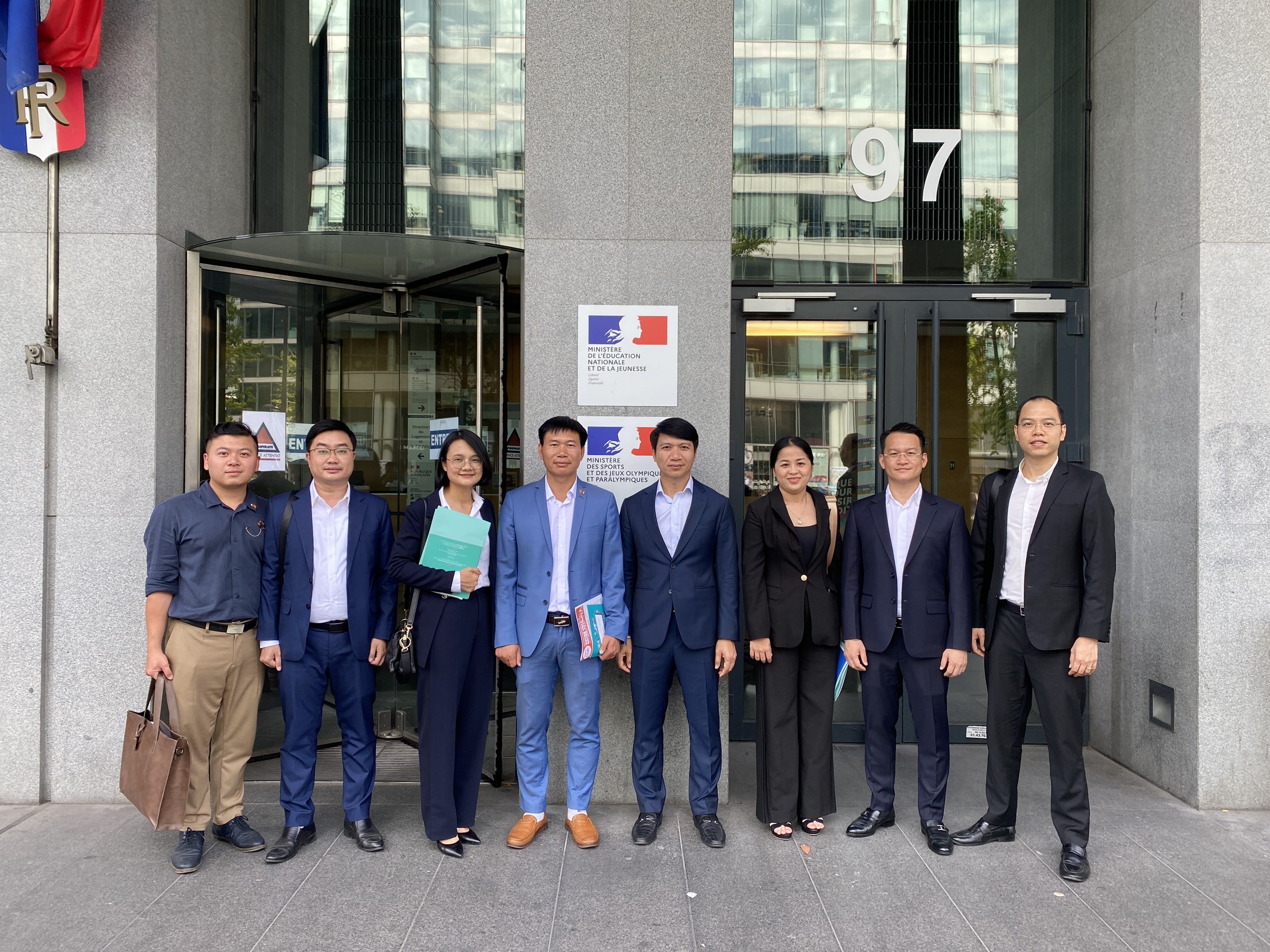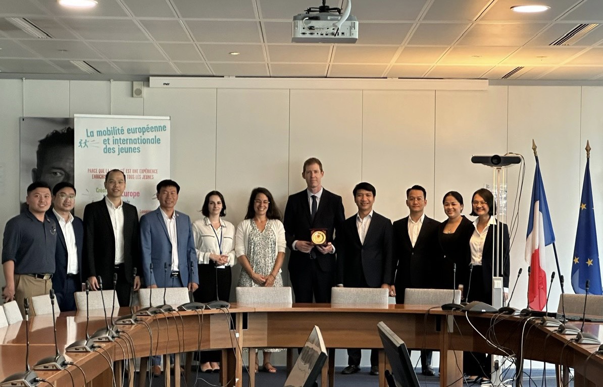 Đoàn công tác chụp ảnh lưu niệm tại Cục Thanh thiếu niên, giáo dục và đời sống, Bộ Giáo dục và Thanh thiếu niên quốc gia Pháp