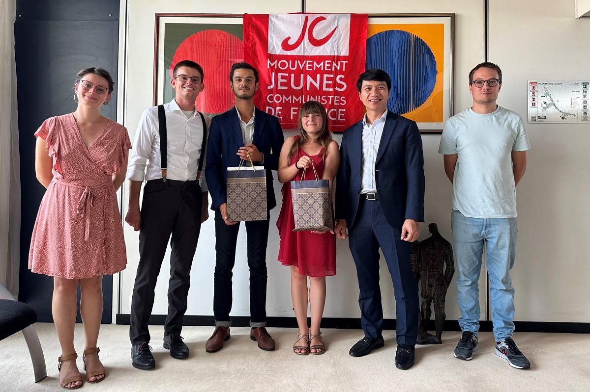 Đồng chí Nguyễn Ngọc Lương trao tặng quà cho các thành viên Phong trào Thanh niên Cộng sản Pháp