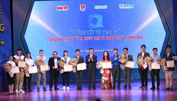 Phó Trưởng ban Thường trực Ban Dân vận Trung ương Phạm Tất Thắng, Chủ nhiệm Ủy ban Văn hóa, giáo dục của Quốc hội Nguyễn Đắc Vinh, Bí thư thứ nhất Trung ương Đoàn Nguyễn Anh Tuấn trao thưởng cho 5 công trình, sáng kiến tiêu biểu đoạt giải Chương trình “Tri thức trẻ vì giáo dục” năm 2021.