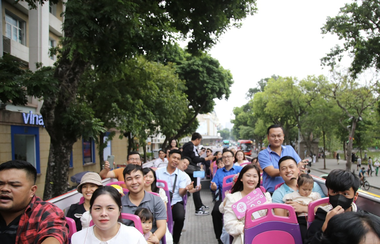 Gia đình trẻ trải nghiệm xe bus 2 tầng tại Hà Nội ngắm nhìn toàn cảnh thành phố từ trên cao như Nhà hát Lớn, Nhà thờ Lớn Hà Nội, Tượng đài Lê Thái Tổ, Cột cờ Hà Nội, Lăng Chủ tịch Hồ Chí Minh, Chùa Trấn Quốc....