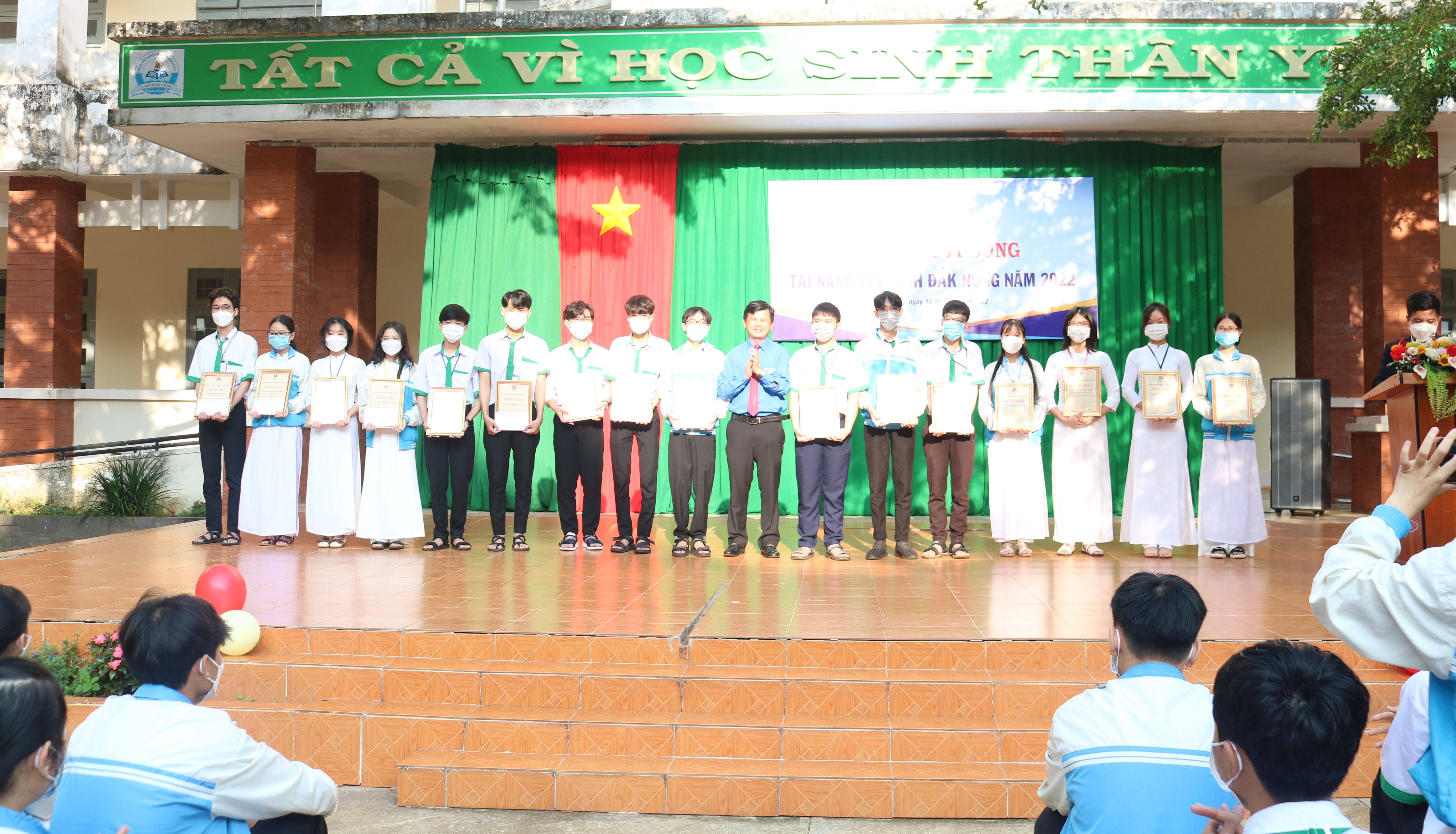 Tại trường THPT Chuyên Nguyễn Chí Thanh (TP. Gia Nghĩa), đồng chí Châu Ngọc Lương - UVBCH TW Đoàn, Tỉnh ủy viên, Bí thư Tỉnh đoàn đã trao Giải thưởng cho 17 em học sinh đạt giải tại Kỳ thi chọn học sinh giỏi quốc gia THPT, năm học 2021 - 2022.