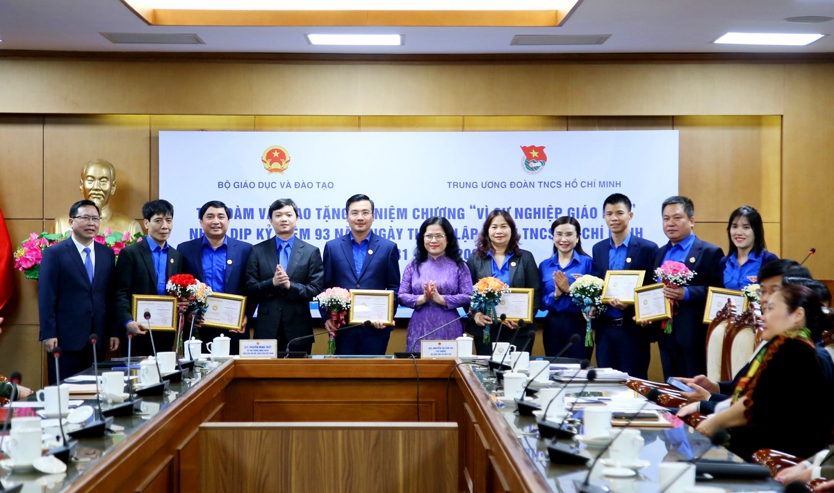 Nhân dịp này, Bộ Giáo dục và Đào tạo đã trao tặng Kỷ niệm chương “Vì sự nghiệp giáo dục” cho 9 đồng chí lãnh đạo, cán bộ Trung ương Đoàn.