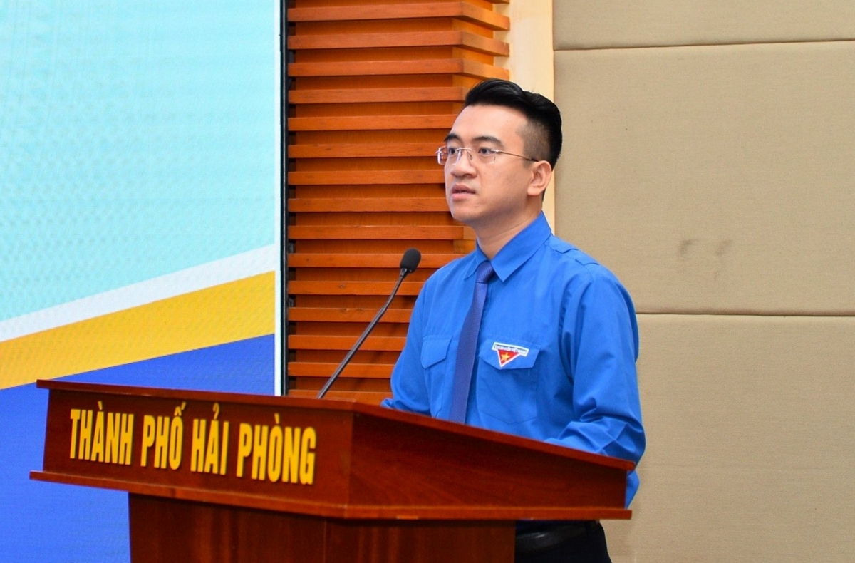 Đồng chí Lê Khắc Nguyên Anh - tân Bí thư Thành Đoàn Hải Phòng phát biểu nhận nhiệm vụ