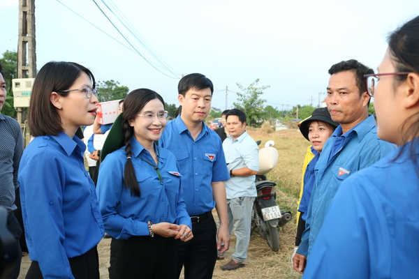 Đồng chí Nguyễn Phạm Duy Trang, Bí thư T.Ư Đoàn, Chủ tịch Hội đồng Đội T.Ư tới thăm và tặng quà các đội hình tình nguyện