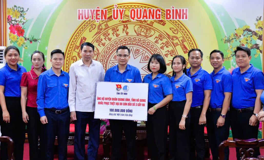 Tỉnh đoàn Tây Ninh trao tặng số tiền 100 triệu đồng cho Huyện đoàn Quang Bình nhằm giúp người dân trên địa bàn khắc phục hậu quả của cơn bão số 3