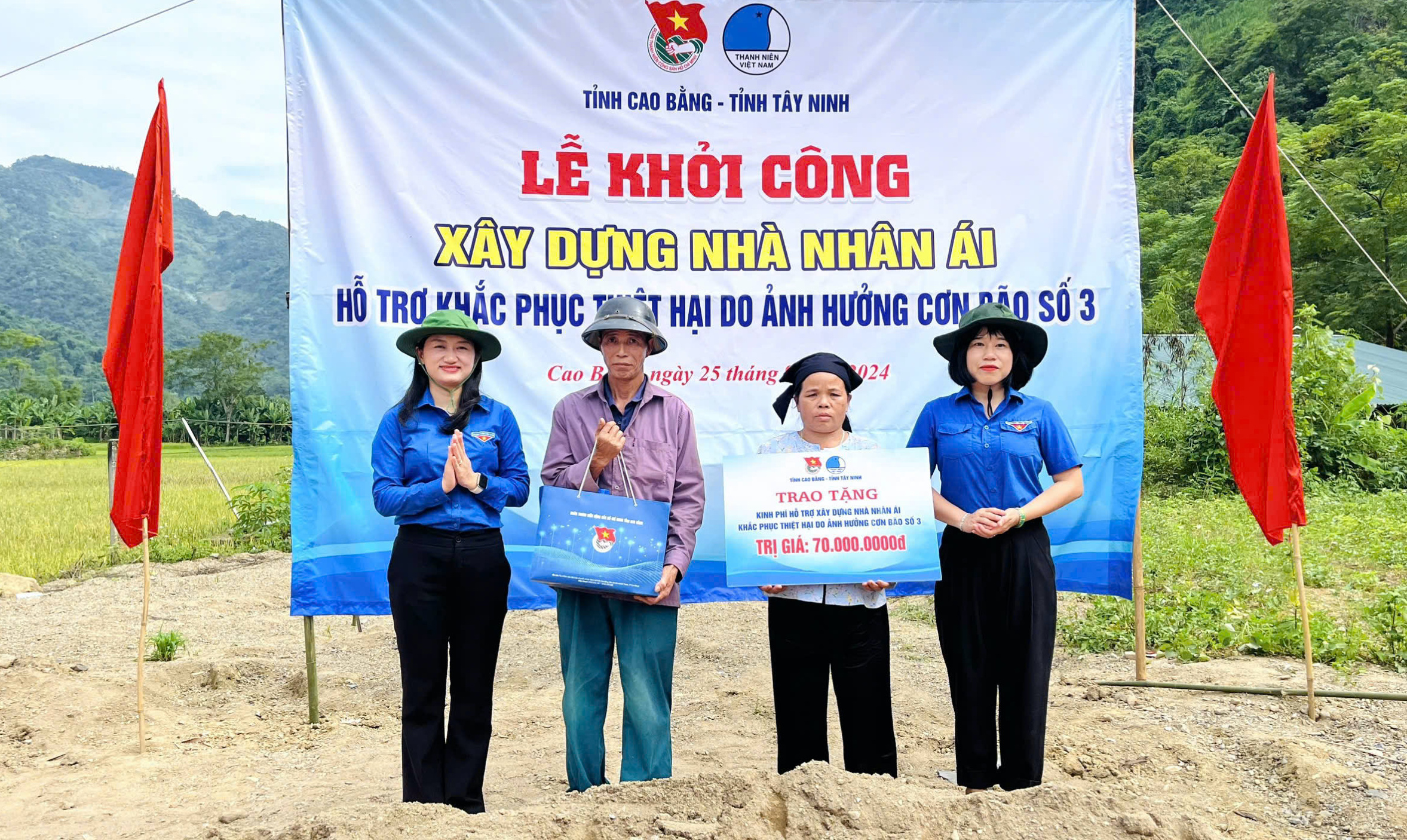 Tỉnh đoàn Tây Ninh trao tặng nguồn kinh phí 300 triệu đồng để giúp người dân huyện Bảo Lạc và huyện Bảo Lâm (tỉnh Cao Bằng) khắc phục thiệt hại cơn bão số 3